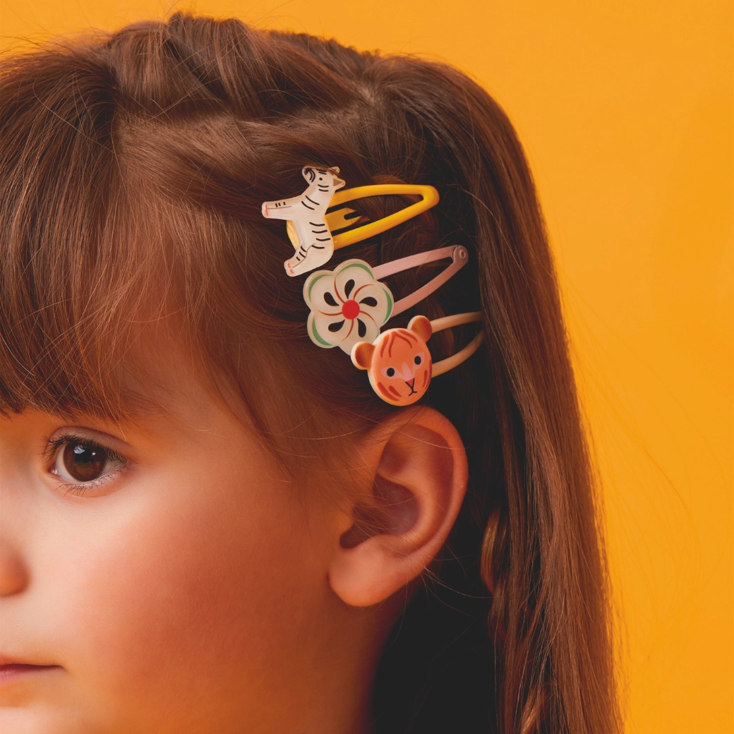 Geef je kapsel een speelse touch met de Colomba-haarspeldjes van DJECO. Stijlvolle kleuren en originele motieven geven alledaagse én feestelijke kapsels een vleugje exotiek. Licht van gewicht, vriendelijke bevestiging zonder aan het haar te trekken en betrouwbare grip de hele dag door.