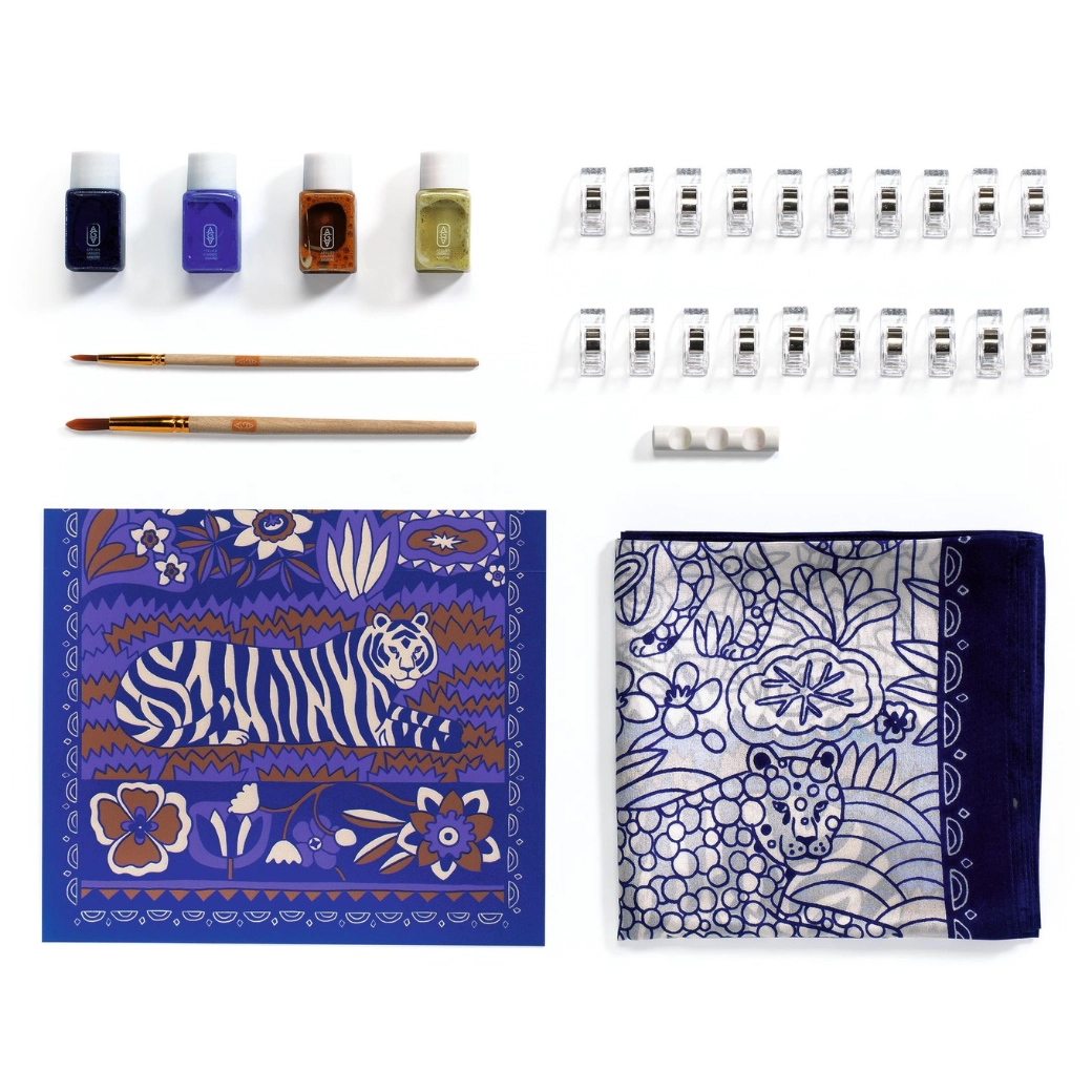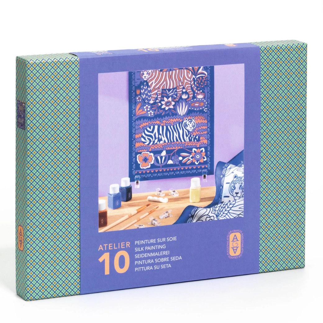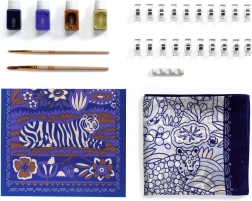 De set Zijde schilderen Atelier 10 van DJECO biedt alles wat je nodig hebt om een prachtige, handbeschilderde sjaal te maken. Voorbedrukte contouren met een tijgermotief en florale patronen begeleiden je penseel en maken precies inkleuren eenvoudig, waardoor dit project ook geschikt is voor complete beginners. Dankzij de hoogwaardige textielverf bereik je intense tinten en zachte kleurovergangen.