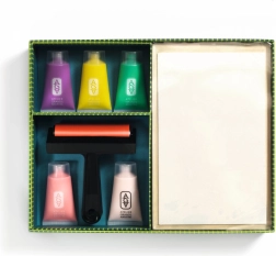 De Atelier-set voor gelprinten van Djeco biedt een intuïtieve manier om unieke afdrukken te maken met een gelprintplaat, roller en acrylverf. Dankzij de eenvoudige werkwijze en zichtbare resultaten is het perfect voor kinderen, schoolprojecten en creatief thuisgebruik.