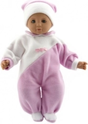 Deze realistische babypop is een geweldige speelkameraad voor elke dag. Dankzij het stoffen lichaam is ze licht, zacht aanvoelend en gemakkelijk te dragen en te knuffelen. De stijlvolle roze-witte overal geeft de pop extra charme en stimuleert de verbeelding van kinderen.