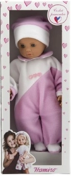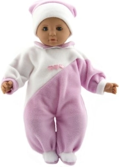 Een schattige babypop van 50 cm die elke kleine moeder blij maakt. Ze heeft een zacht stoffen lichaam voor heerlijk knuffelen en draagt een roze-witte overal. Ideaal voor verzorgingsspel en het ontwikkelen van fantasie en fijne motoriek.