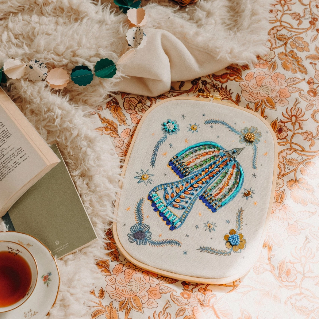 Deze stijlvolle set voor kralenborduurwerk bevat alles wat je nodig hebt om prachtige motieven van vogeltjes, bloemen en andere decoraties te maken. De hoogwaardige houten borduurring, bedrukte stof en het palet van gekleurde garens en kralen helpen je fijne details met een subtiele glans te bereiken.