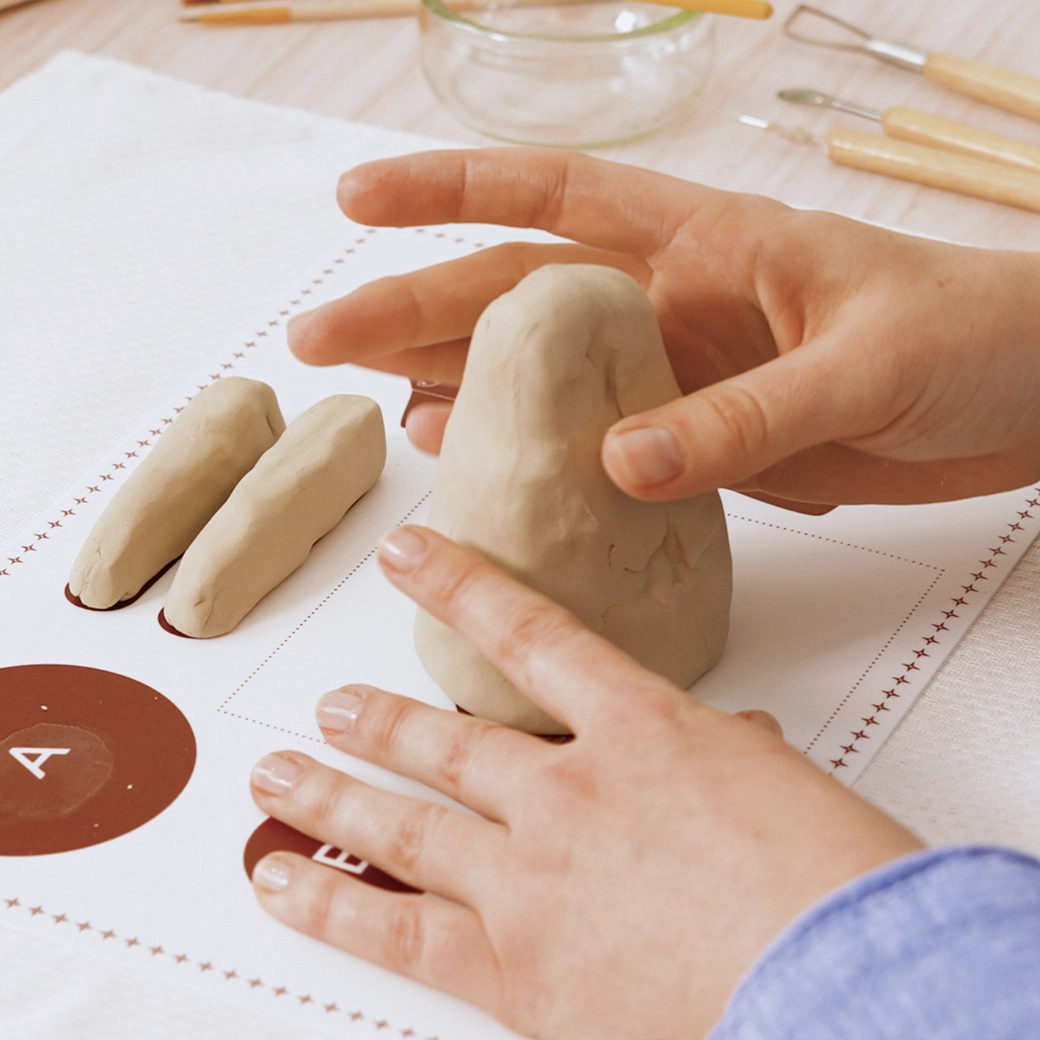 Boetseerklei met een gladde textuur kneedt licht, behoudt goed zijn vorm en maakt het mogelijk precieze gelaatstrekken en vachtstructuur te creëren. Ideaal voor beginners.