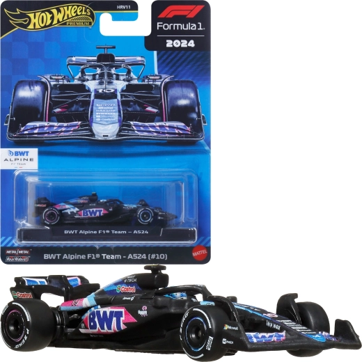 Gedetailleerd verzamelmodel van een Formule 1‑wagen op schaal 1:64 uit de serie Hot Wheels Premium, voorstellende de bolide BWT ALPINE F1 Team A524 #10 met precieze afwerking, metalen carrosserie en realistische details. Ideaal voor verzamelaars en motorsportfans – gelicentieerd product met rollende wielen en hoogwaardige afwerking.