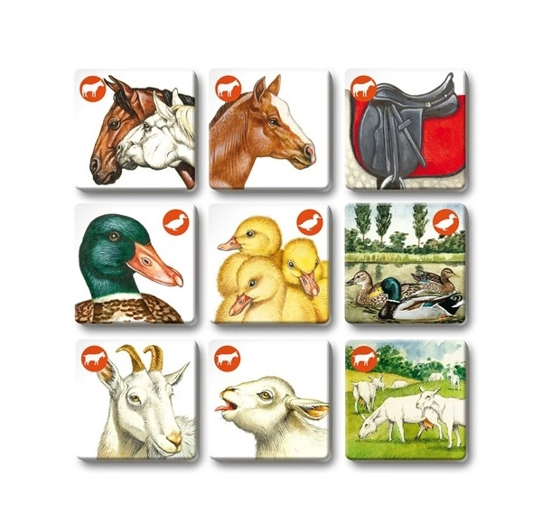 Pexetrio: Boerderijdieren is een didactisch spel dat leren en plezier combineert. Kinderen maken spelenderwijs kennis met dierennamen en hun jongen, ontdekken de boerderijomgeving en leren de juiste producten te koppelen (melk, eieren enz.).