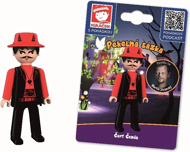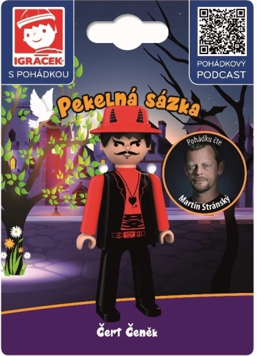 Laat kinderen kennismaken met een sprookjeswereld waar de duivel Čeněk en de engel Adámek elkaar ontmoeten in het verhaal Helse weddenschap. Het audiosprookje speel je eenvoudig af door de QR‑code op de verkoopkaart te scannen of via de hub www.pohadkaigracek.cz. Het figuurtje en het verhaal ondersteunen creativiteit en vertellen, ideaal voor samen én voor zelfstandig spelen.