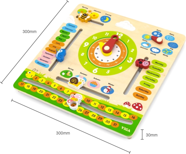 Educatieve kalender VIGA is de ideale tool voor kinderen om te leren over tijd, weersveranderingen en seizoenen. Dankzij de kleurrijke en beweegbare elementen helpt het dagelijks bij het begrijpen van het tijdsconcept.