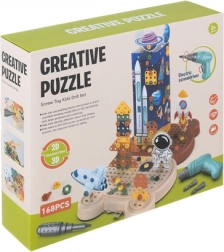 Ontdek de creatieve wereld van bouwen met de 3D constructieset voor kinderen met ruimtethema! De set bevat 161 delen, een handige elektrische schroevendraaier met verwisselbare bits en een schattige beer-vormige box die ook dient als geperforeerde montageplaat. Kinderen oefenen hun fijne motoriek, logisch denken en bouwen hun eigen raketten, planeten en voertuigen.