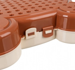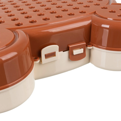 De schattige box dient als montageplaat én als opbergruimte voor alle onderdelen. Eenvoudig te dragen dankzij de schouderriem en veilige sluitingen voor stevig afsluiten.