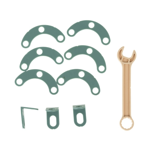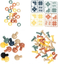 - Kunststof schroeven en moeren, kleurrijke constructiedelen, bouwkaarten, draagriem