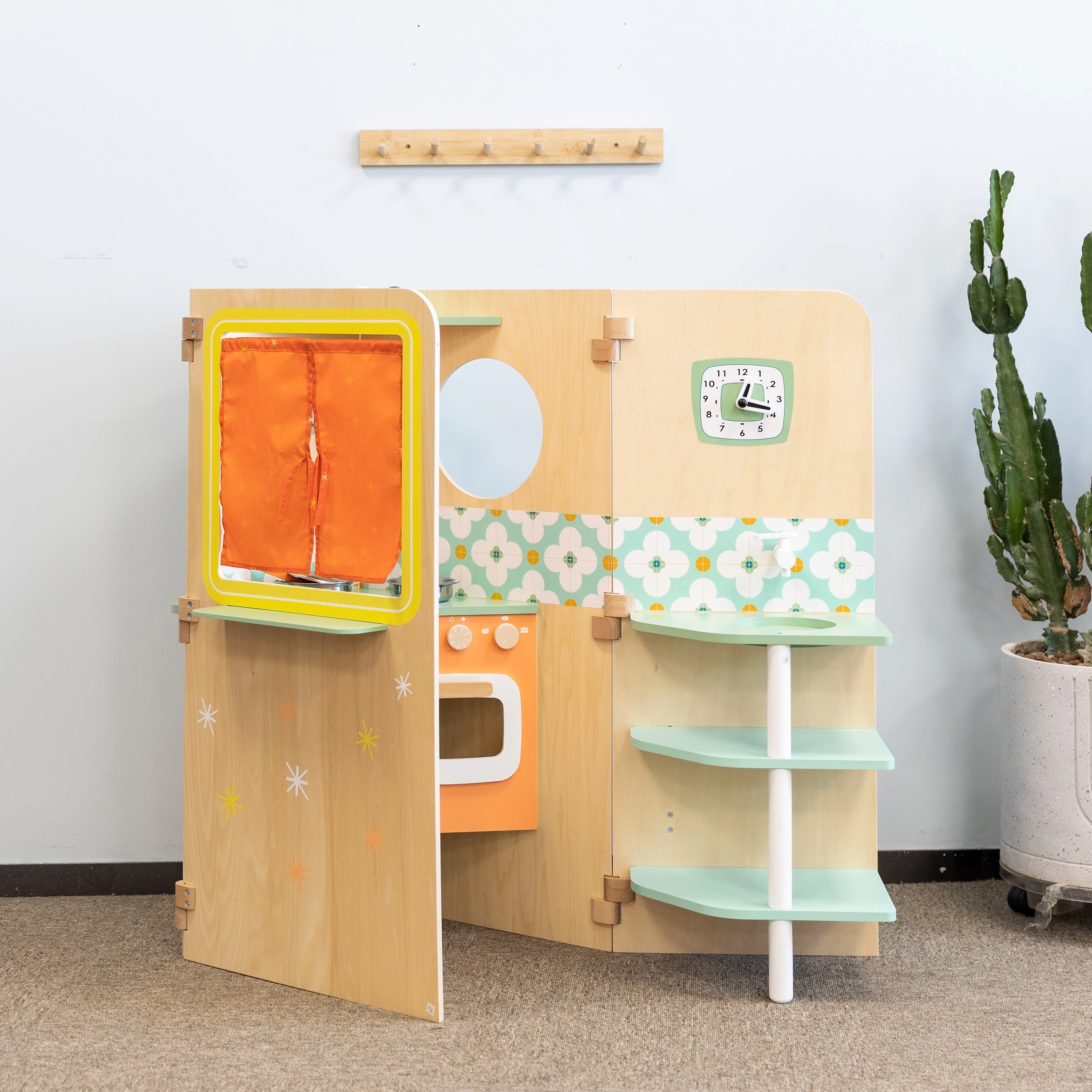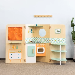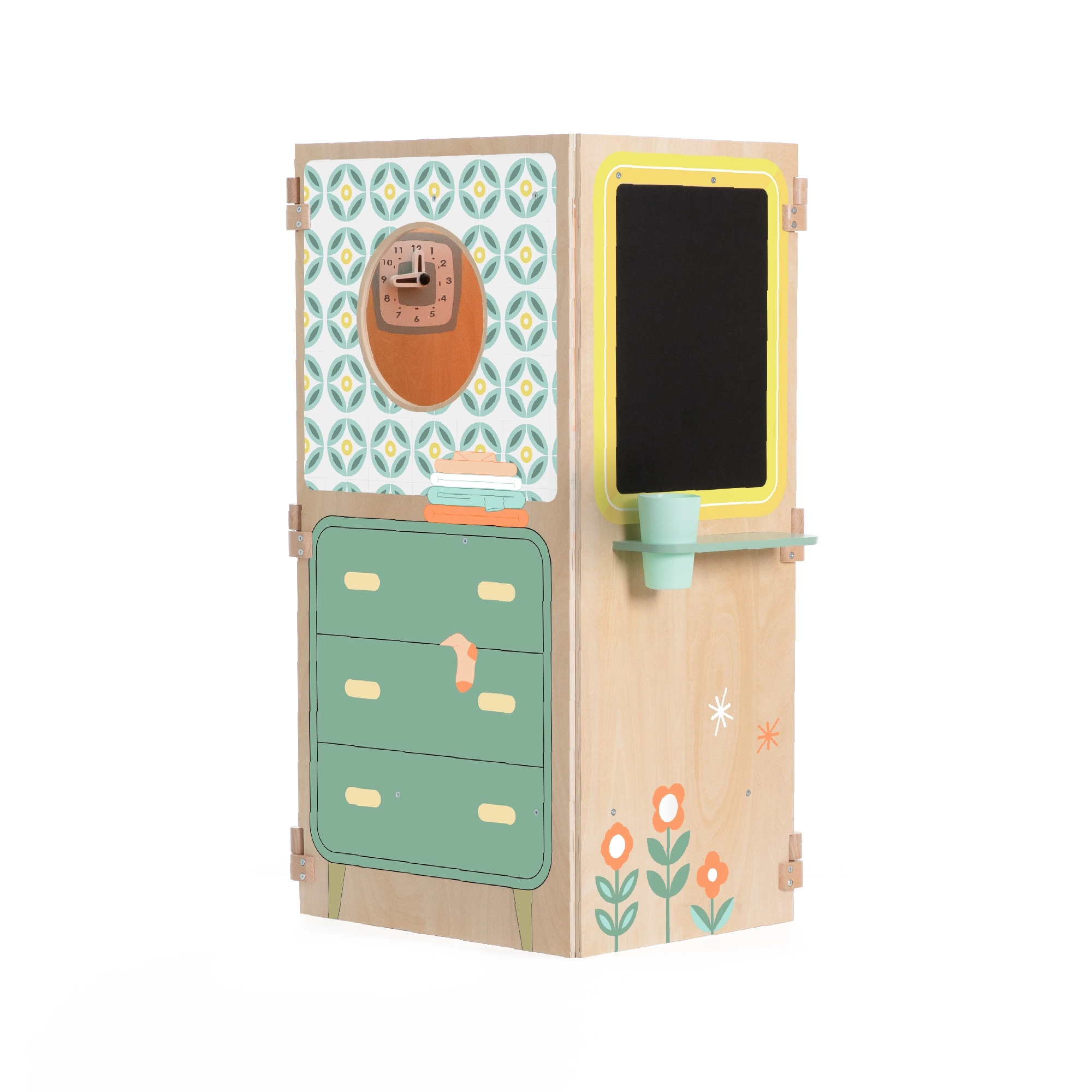 - Multifunctioneel plezier: keukentje, wasserij, loket voor poppentheater en krijtbord