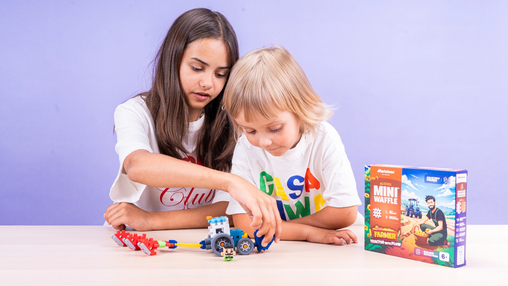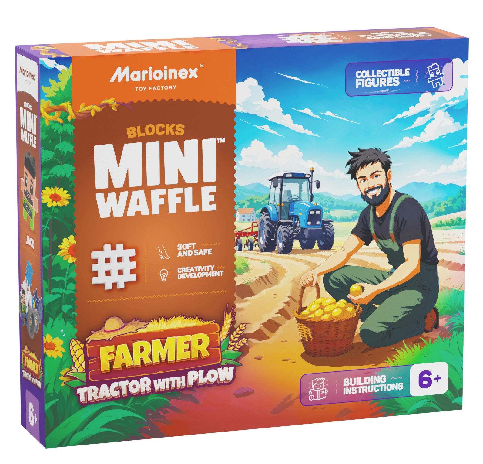 De bouwset MINI WAFFLE FARMER – Tractor met ploeg brengt kinderen naar de wereld van het dagelijkse werk op het land. Bouw een realistisch tractormodel met een functionele ploegaccessoire, zet de fantasie aan het werk en creëer je eigen verhalen uit het boerenleven. Dankzij de flexibele stukjes is bouwen intuïtief en prettig, en het afgewerkte model is klaar om mee te spelen.