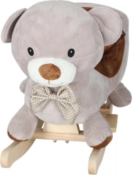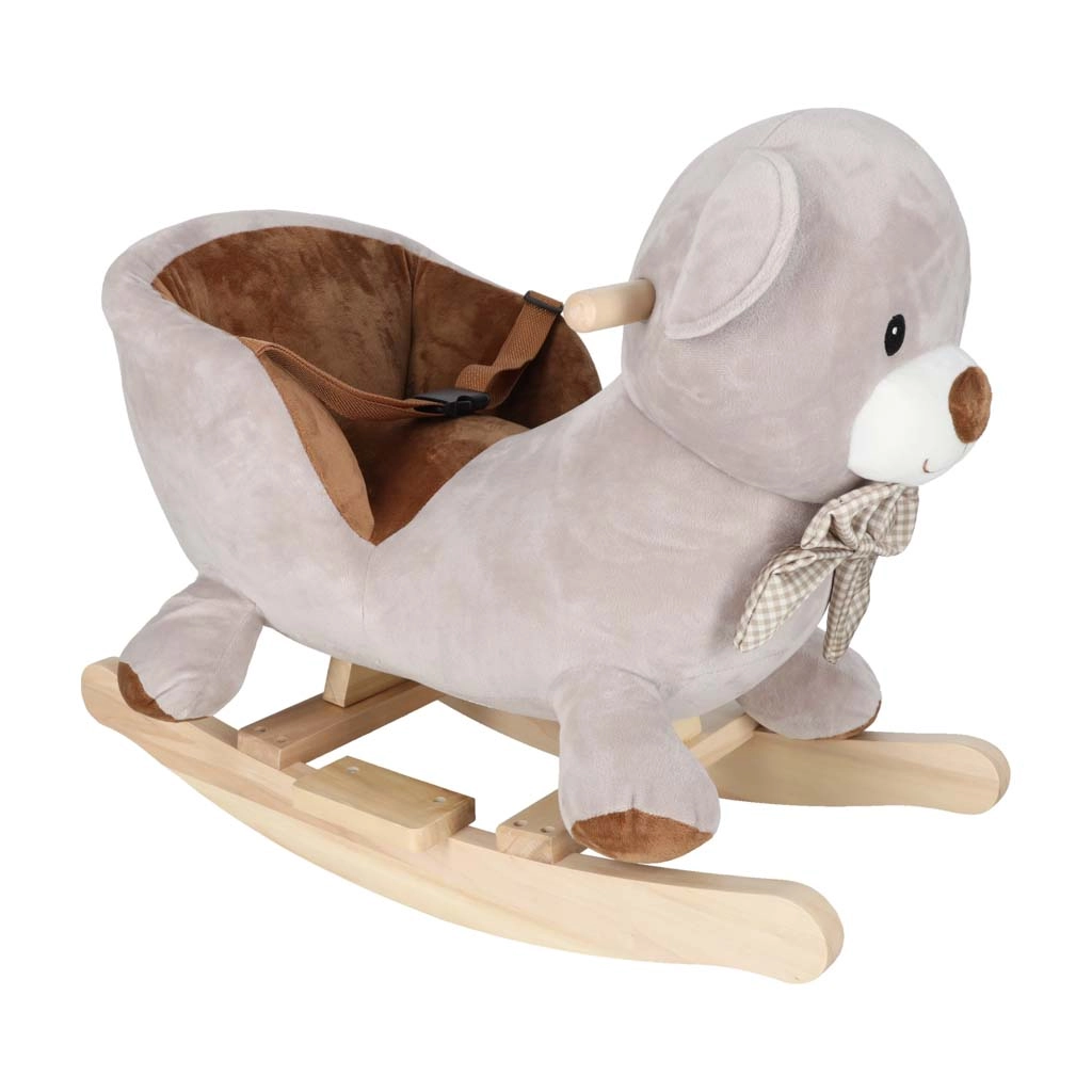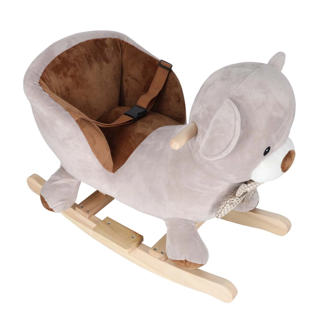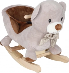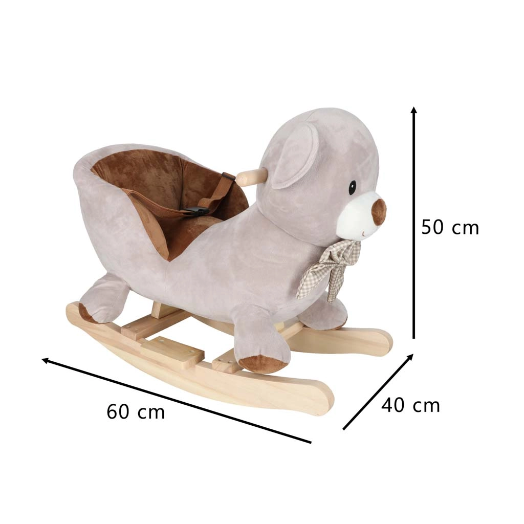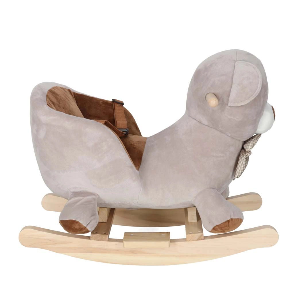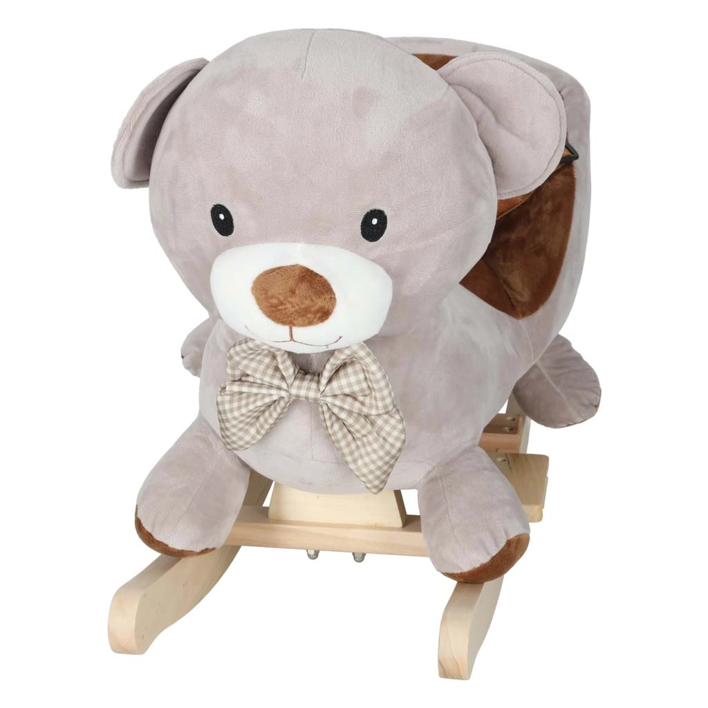 Pluche schommelende teddybeer voor kinderen vanaf 12 maanden biedt een veilige en leuke rit dankzij het zachte zitje met rugleuning, verstelbare veiligheidsgordels en stabiele houten schenkels met voetsteunen. Bij het indrukken van het linkeroortje maakt hij geluiden die de zintuigen prikkelen en het speelplezier vergroten.