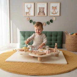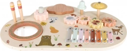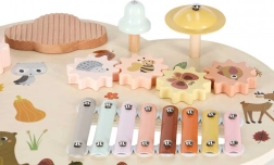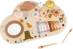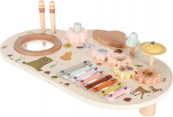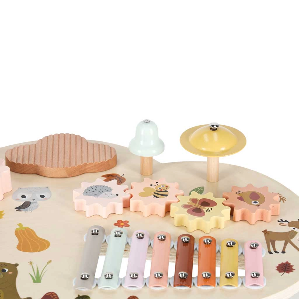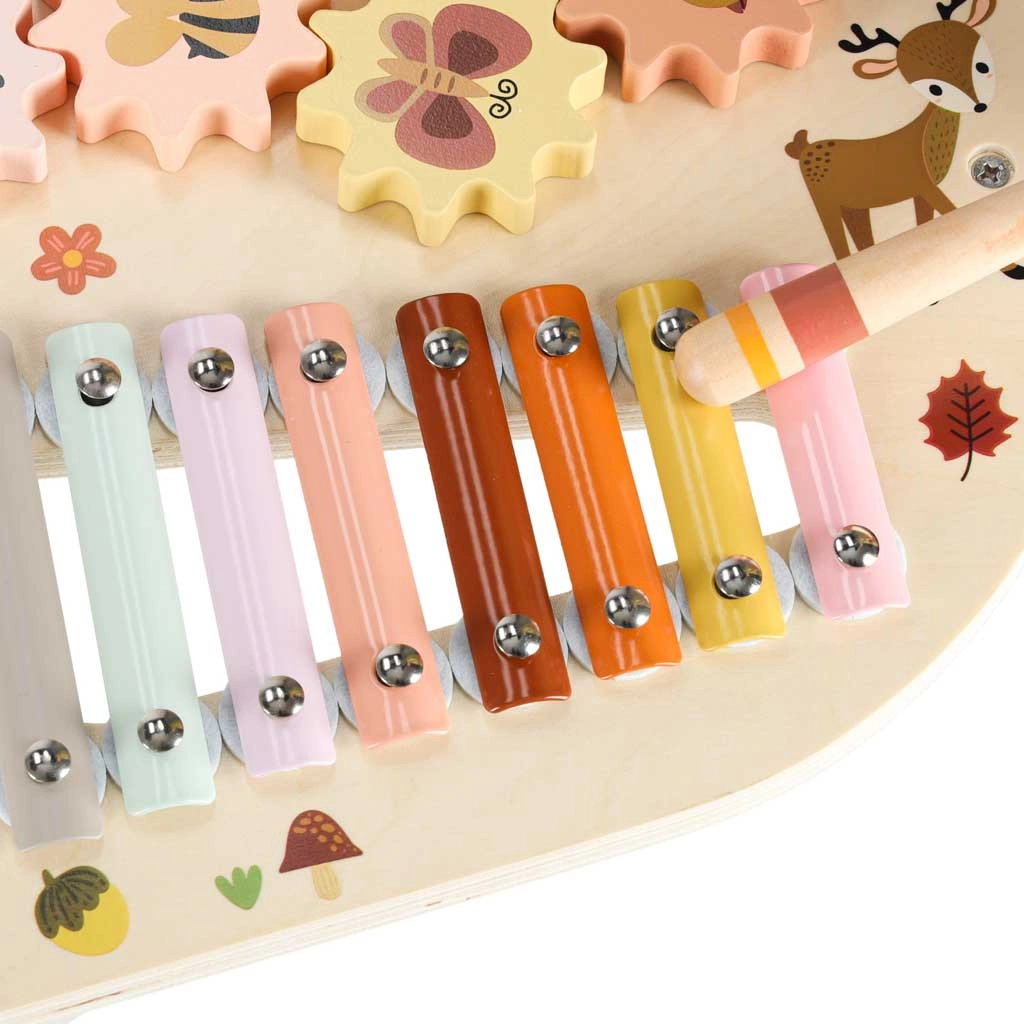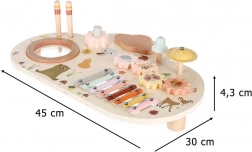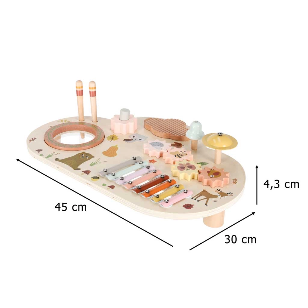 Ontdek de wereld van ritme en creativiteit met deze houten muziektafel voor de allerkleinsten. Combineert een xylofoon, trommel, bel en andere sensorische elementen voor plezier, leren en de ontwikkeling van motoriek. Dankzij de stabiele pootjes, hoogwaardig hout en het pastelkleurige design is het de ideale keuze voor de eerste muzikale ontdekkingen.