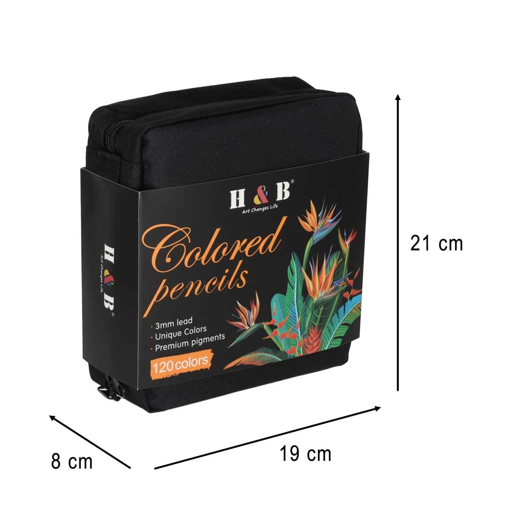 • Complete uitrusting: 120 potloden, gum en metalen puntenslijper in een overzichtelijk etui.