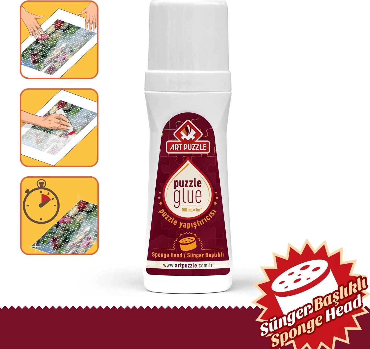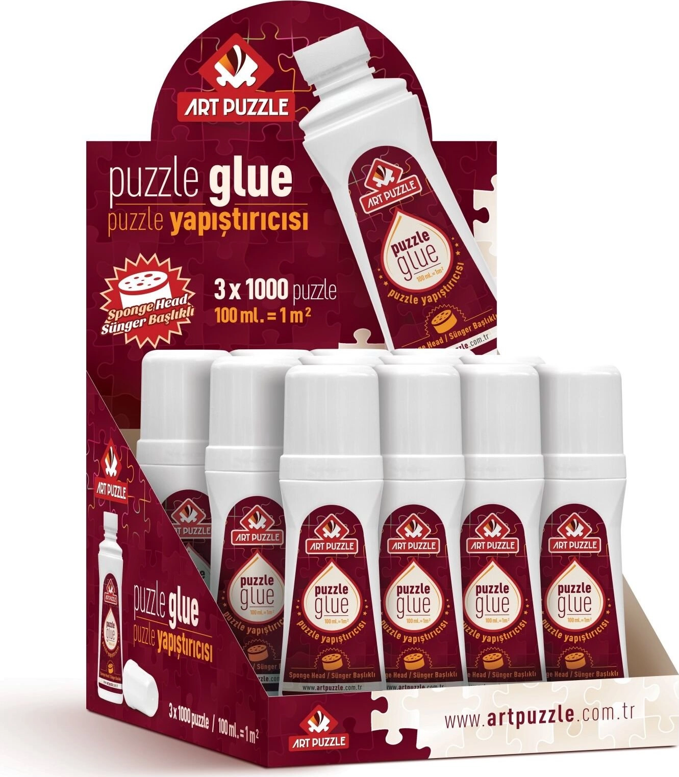 Praktische vloeibare puzzellijm van het merk ART PUZZLE zorgt voor permanente verlijming van je voltooide puzzel. Dankzij de applicator op het flesje breng je de lijm eenvoudig rechtstreeks op het oppervlak aan en vloeit hij in de naden tussen de stukjes. Snelle droogtijd van 2–3 uur en een rendement tot 1 m² maken deze lijm ideaal voor puzzels tot circa 3000 stukjes.