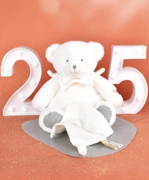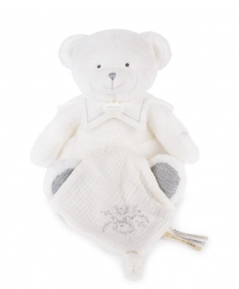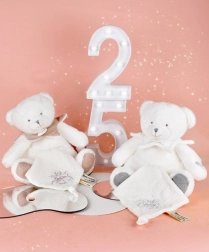 Dit superzachte beertje met een knuffelzacht troostdekentje zal zowel baby’s als ouders blij maken. Het dekentje is versierd met een subtiel DOUDOU-borduursel en satijnen lintjes met liefdevolle boodschappen, die zorgen voor een teder bedritueel. Dankzij de mogelijkheid om het dekentje in het buikje van het beertje op te bergen is de set perfect voor onderweg en gemakkelijk hygiënisch te houden.