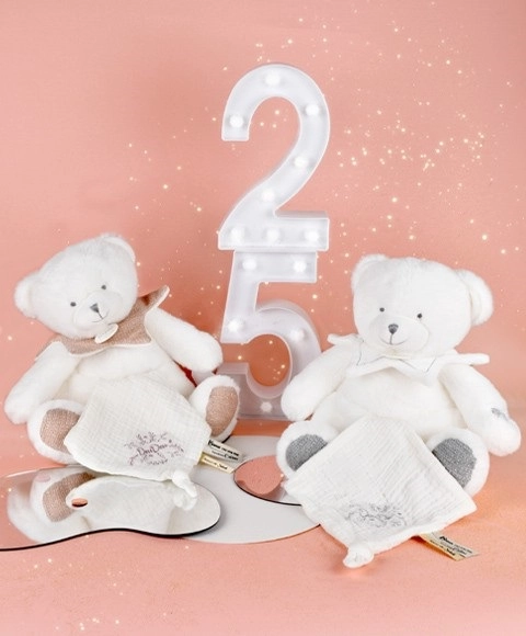 Het superzachte materiaal, het DOUDOU-borduursel en satijnen lintjes met tedere boodschappen geven een gevoel van veiligheid en comfort voor dagelijks knuffelen.