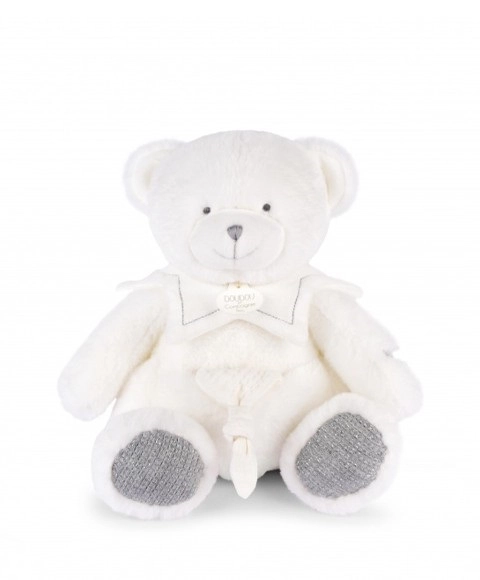 Een schattige DOUDOU cadeauset met een pluchen beertje en een superzacht dekentje geeft kinderen vanaf de geboorte een gevoel van veiligheid en helpt bij het rustig in slaap vallen. Zacht premium materiaal, subtiele neutrale kleuren en de praktische mogelijkheid om het dekentje in het buikje van het beertje op te bergen maken dit de ideale gift voor een geboorte of doop. Inclusief een elegante geschenkdoos.