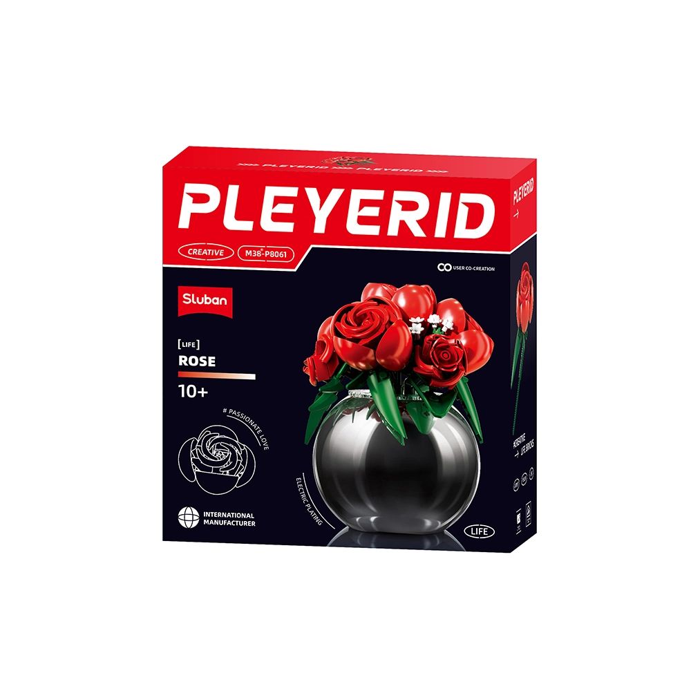 Ontdek elegante decoratie en creatieve fun in één: de bouwset rode rozen in een vaas van Sluban. Realistisch gevormde rozen, bladeren en witte bloemetjes in een contrasterende zwarte vaas verwelken nooit, verfraaien je interieur en ontwikkelen tegelijk fijne motoriek, geduld en creativiteit. De onderdelen van duurzaam ABS‑kunststof zijn compatibel met LEGO en andere merken.