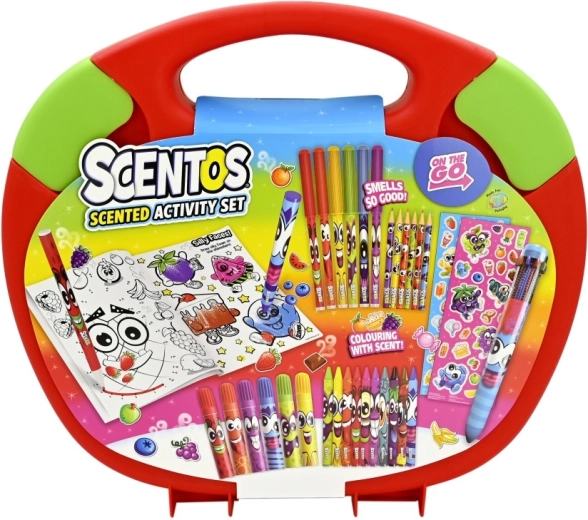 Ontdek de praktische geurende creatieve set van Scentos in een stevige draagbare koffer, die kleine makers zal verrassen. Bevat geurende stiften, kleurpotloden, waskrijtjes, kleurplaten en stickers. Alles is niet‑toxisch en veilig voor kinderen, ideaal voor thuis, op school en onderweg.