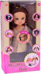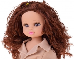 De schattige pop Kalinka is klaar voor herfstige avonturen. Ze heeft volle krullende kastanjebruine haren, bewegende ledematen en draagt een elegante beige trenchcoat met ceintuur, leggings en zwarte schoenen. Dankzij de geluidsfunctie speelt ze na het indrukken van haar buikje een vrolige melodie af. Perfect voor creatief spelen, kammen en verkleden.