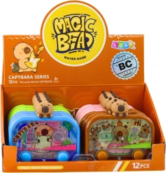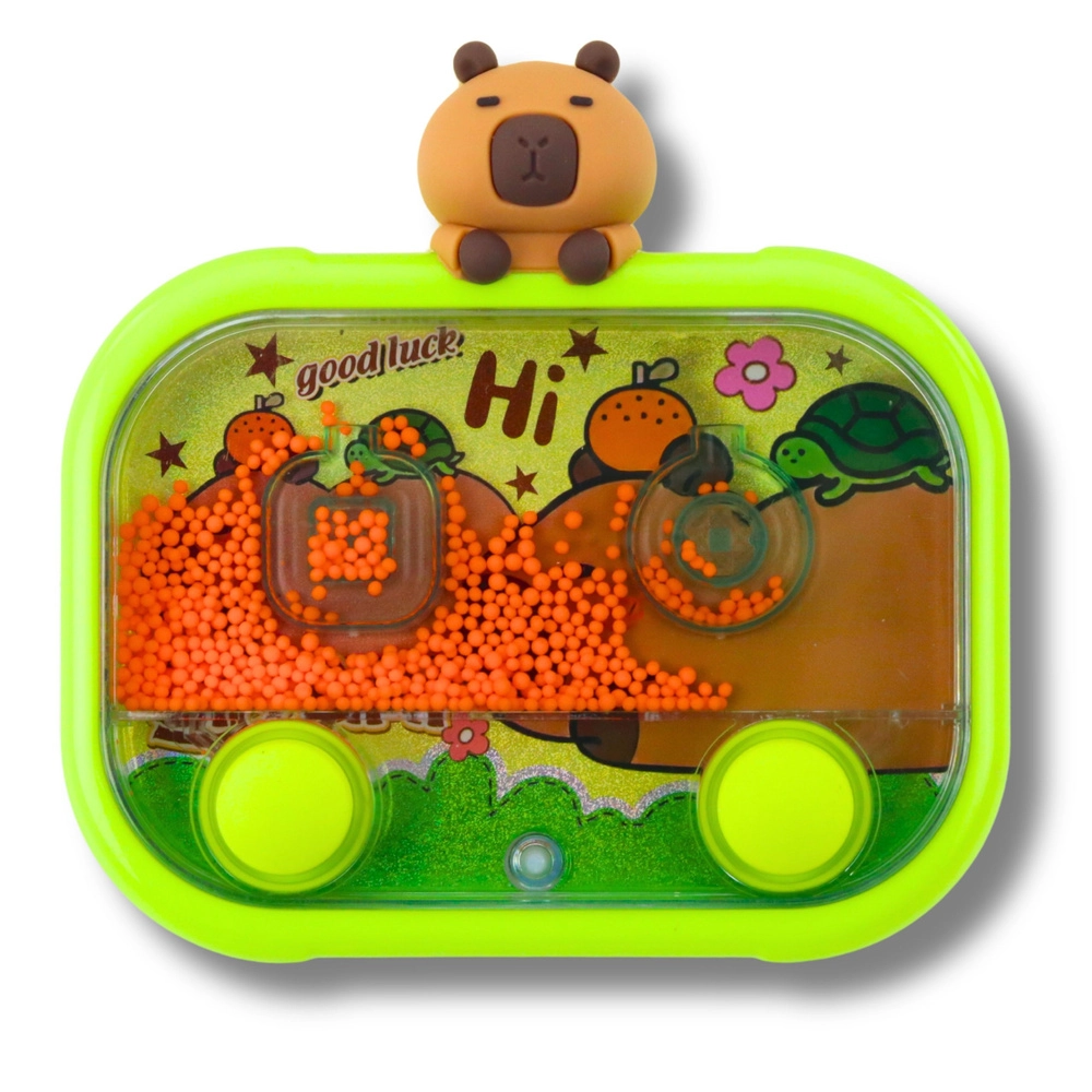 Ontdek de charme van het klassieke waterspel in een nieuw, kleurrijk design met capibara-thema. Het spel werkt mechanisch – druk op de knoppen om de waterstroom in beweging te brengen en leid de balletjes precies in de houders. De verlichting die wordt geactiveerd door op de capibara te drukken, verlicht het binnenwerk en maakt het spelen nog aantrekkelijker, vooral bij schemer.