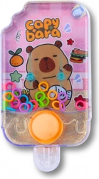 Een leuk waterspel met het schattige KAPIBARA-motief in de vorm van een ijsje bezorgt plezier aan zowel kinderen als volwassenen. Druk op de knop, zet het water in beweging en probeer de kleurrijke ringetjes op de pinnetjes te mikken. Het spel werkt zonder batterijen, is compact, licht en ideaal voor onderweg. Het stimuleert geduld, fijne motoriek en zorgt voor lange minuten speelplezier.
