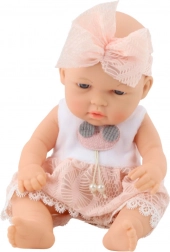 Deze babypop betovert met een elegant roze jurkje met kanten rand en een bijpassende haarband met grote strik. Fijne gelaatstrekken en aangename materialen wekken de indruk van een echt baby’tje waar kinderen snel dol op worden.