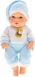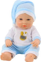 Een schattige babypop in een blauwe pyjama die elk kind zal blij maken dat van vadertje‑en‑moedertje spelen houdt. De stoffen outfit is prettig aan te raken en de pop heeft realistische gelaatskenmerken, beweegbare armpjes en beentjes en een lichtgewicht ontwerp dat geschikt is voor kleine kinderhanden. Een geweldige speelgoedkeuze voor de ontwikkeling van empathie, verbeeldingskracht en fijne motoriek.