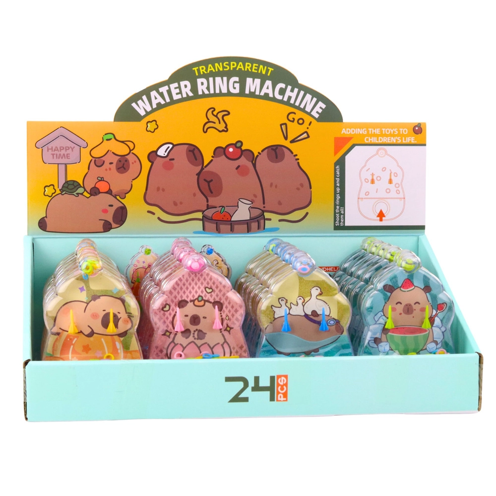 Het capibara-waterspel verrast met eenvoudige regels en langdurig speelplezier. Met een druk op de knoppen laat je het water stromen en probeer je de ringetjes op de kegeltjes te plaatsen – gemakkelijk te begrijpen, maar perfect om precisie te trainen. De schattige ijsvorm en de verschillende kleuropties trekken de aandacht van kinderen en motiveren tot nieuwe pogingen.