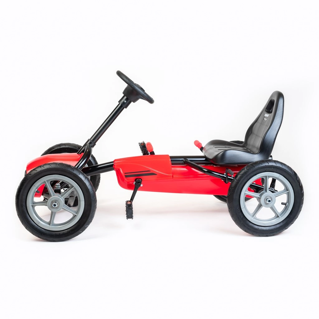 De trapkart BABY MIX Buggy is een geweldige metgezel voor kinderen die houden van bewegen en buiten spelen. De ergonomische zitting met twee verstelniveaus van de afstand tot het stuur zorgt voor comfort, terwijl de stabiele metalen constructie met kunststof kappen duurzaamheid en een sportieve look biedt. Grote opblaasbare wielen met lagers garanderen een soepele rit op asfalt en verharde paden.