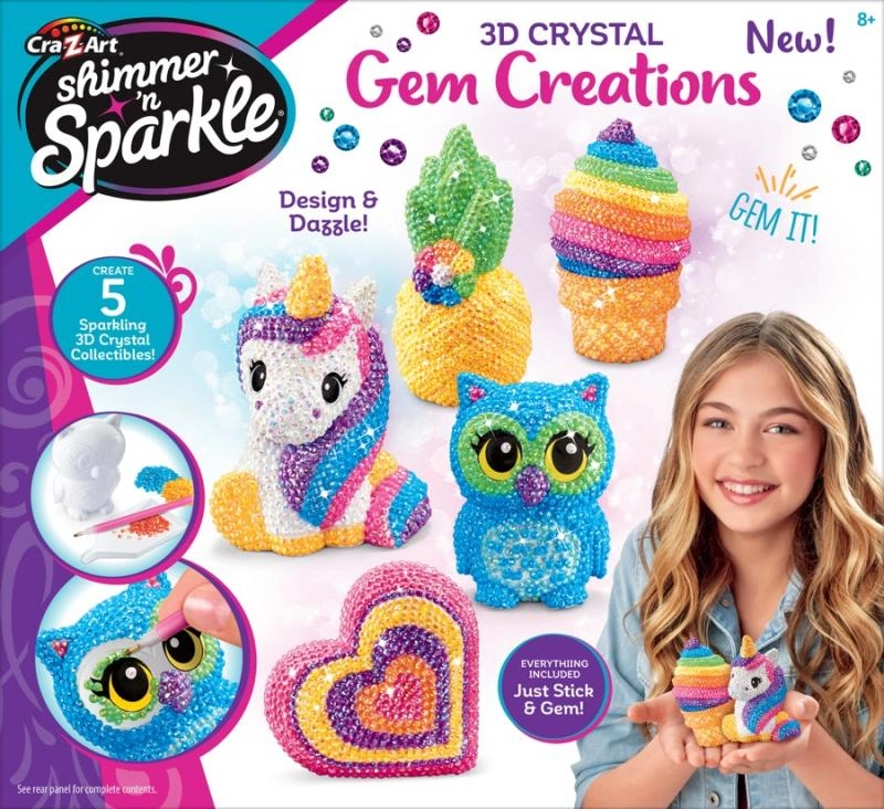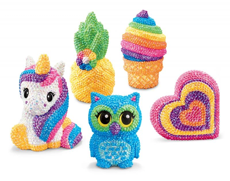 De afgewerkte creaties zijn perfect als kamerdecoratie, kleine cadeautjes of verzamelornamenten. Een leuke activiteit die focus stimuleert, vingervaardigheid traint en direct visueel effect geeft dankzij de glinsterende steentjes.