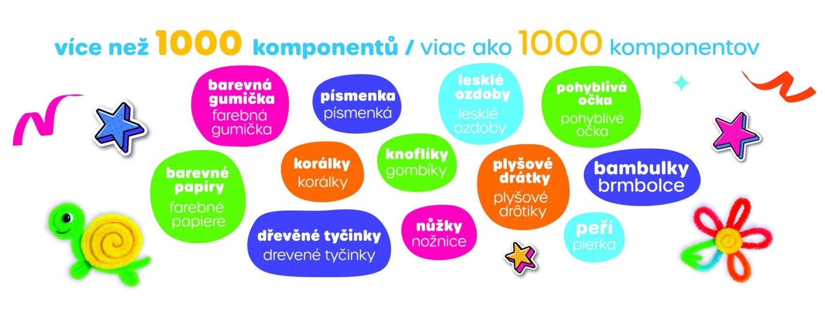 Deze uitgebreide set stimuleert de verbeelding, fijne motoriek en creativiteit van kinderen. Dankzij de uiteenlopende materialen maken kinderen hun eigen versieringen, diertjes, bloemen en kleine decoraties – thuis, op de opvang of onderweg. De praktische box houdt alle onderdelen bij elkaar en maakt opruimen sneller.