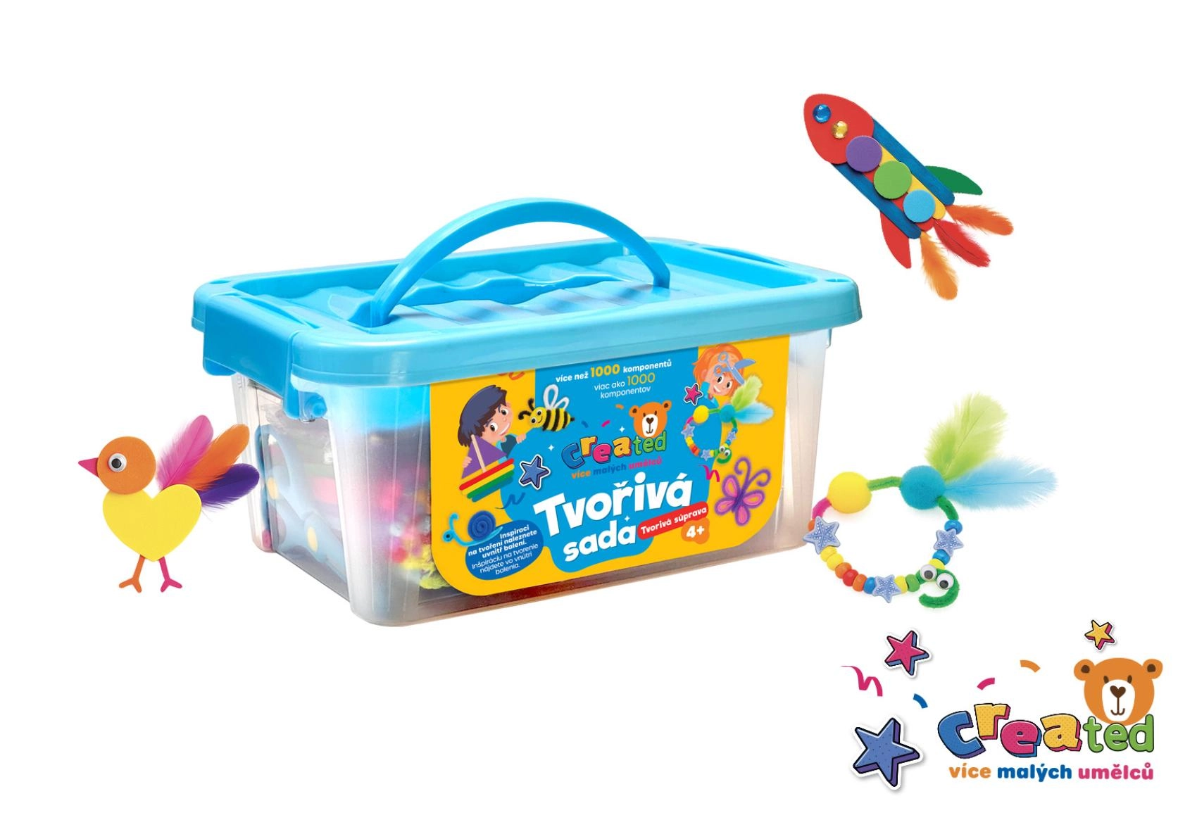 Geschikt voor DIY-projecten, knutselmomenten en samen knutselen met ouders. Kleurrijke foam vormen, pijpenragers, pomponnetjes, kralen en stickers nodigen uit tot experimenteren en spelen. De box met handvat zorgt voor eenvoudig transport en veilige opslag.