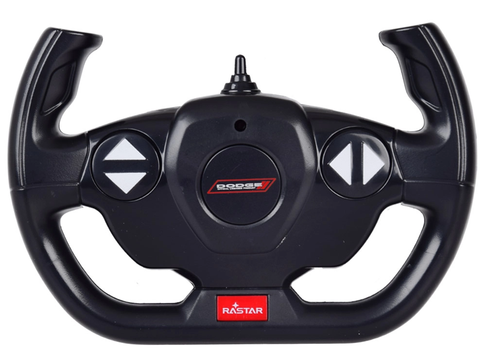 De RC-auto wordt bediend met de meegeleverde stuurwielzender en kan vooruit/achteruit rijden en links/rechts sturen. De robuuste matzwarte afwerking met zilverkleurige velgen en de typische “blower” maakt van het model zowel een blikvanger op de plank als een actievolle rijpartner in huis.