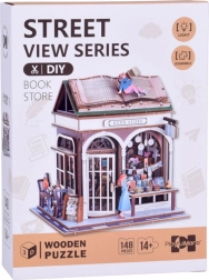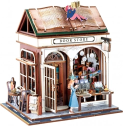 Deze gedetailleerde houten 3D-puzzel laat je een realistische mini boekhandel bouwen, vol boeken en kleine decoraties. De LED-verlichting tovert na zonsondergang een knusse sfeer tevoorschijn en accentueert doordachte details die door de ramen zichtbaar zijn. Het model is perfect als originele interieurdecoratie en als cadeau voor liefhebbers van modelbouw en klusprojecten.