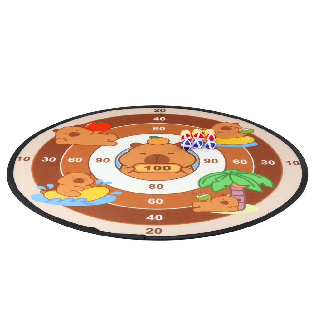 Dit kinderspel combineert beweging, competitie en training van precisie. Het doel is om zachte klittenbandballen op het stoffen doel met schattige capibara’s te schieten en punten te verzamelen voor treffers. Dankzij de zachte projectielen en afgeronde randen is het spelen veilig voor jongere kinderen en geschikt voor gebruik binnen en buiten.