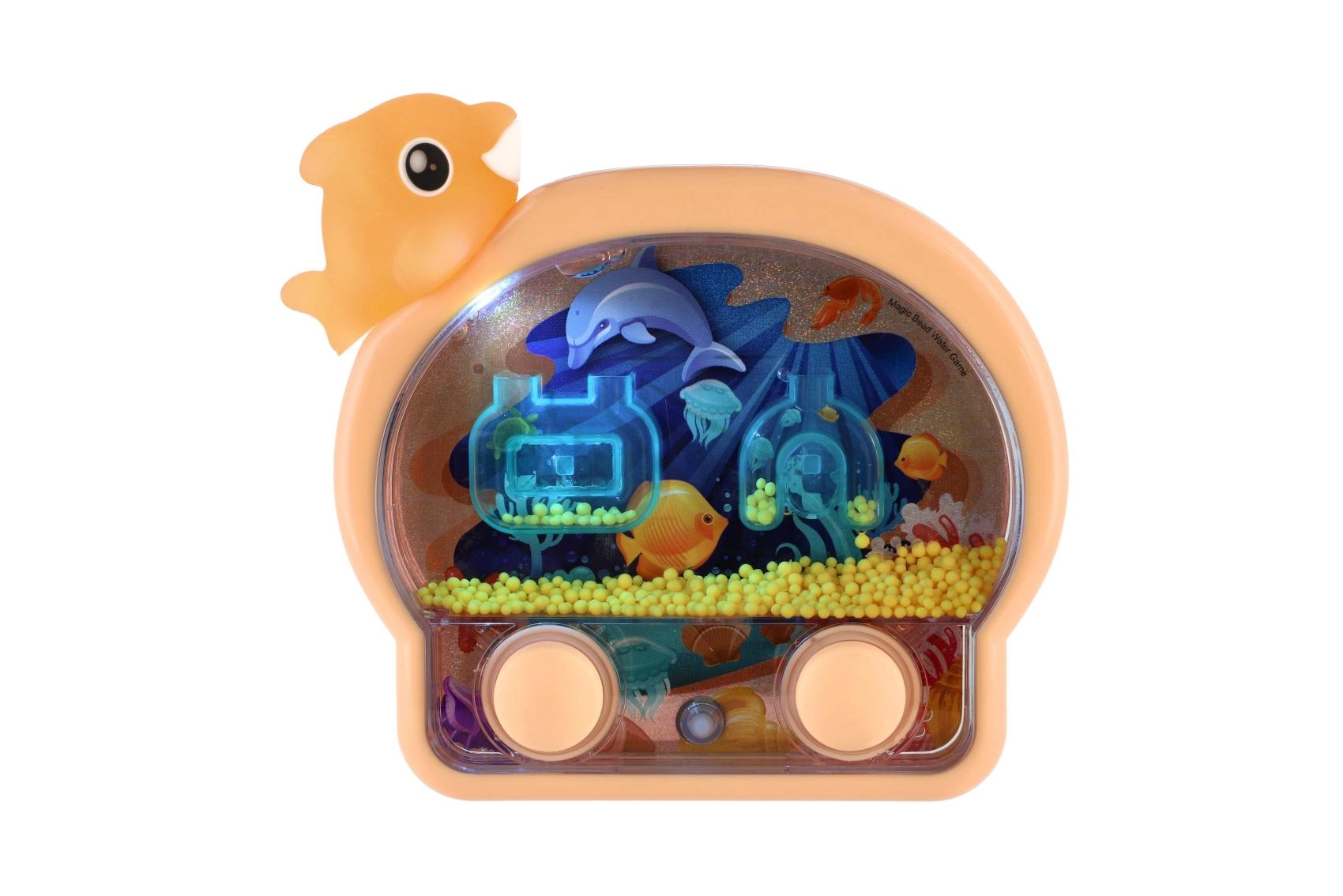 Deze lichte en robuuste watergame in de vorm van schattige zeedieren is de ideale reisgenoot – voor in de auto of in de wachtkamer. Twee drukknoppen zetten het water in beweging en schieten ringen of balletjes richting de doelen – een eenvoudig principe waar kinderen dol op zijn en steeds naar teruggrijpen.