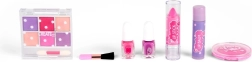 - 2× nagellak, haarkrijt, grote kwast, lipbalsem, lippenstift, kleine dubbelzijdige applicator, palet met 6 glinsterende oogschaduws