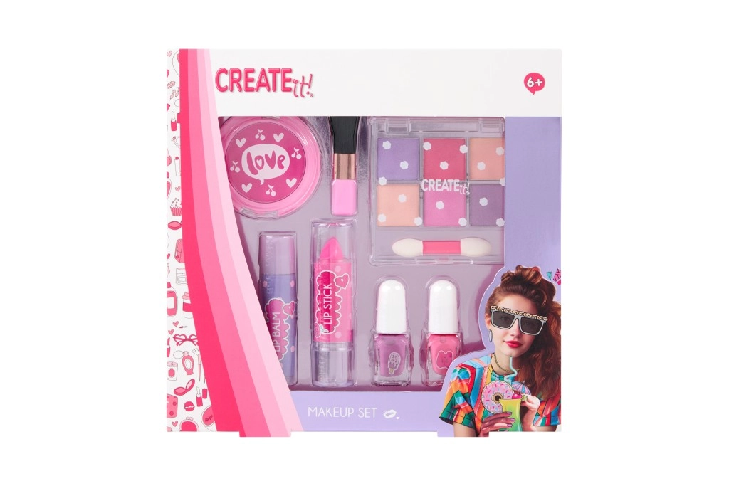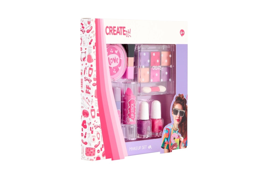 De CREATE IT! Pink Turquoise make-upset is een ideale keuze voor creatief spelen en rollenspellen met beautyrituelen. Pasteltinten, glinsterende oogschaduws en makkelijk afwasbare producten verrukken elke jonge liefhebber van mode en make-up. Perfect als cadeau, voor feestjes of een creatief middagje met vriendinnen.
