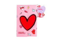 Ontdek de creatieve wereld van make-up met de CREATE IT! kinderset in de vorm van een magnetisch boek. Dankzij de slimme opvouwbare etui met hartje is alles overzichtelijk geordend, makkelijk mee te nemen en direct klaar voor gebruik. Kleurvolle paletten en accessoires stimuleren veilig experimenteren, prikkelen de fantasie en bevorderen de fijne motoriek.