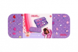 Ontdek de compacte en speelse CREATE IT!-cassette die vrolijke kleuren, een schattig design en een praktische indeling combineert. De drielagige uitklapbare metalen doos in paarse look houdt de cosmetica veilig op zijn plek en zorgt voor snelle oriëntatie tussen schaduws, glosses en accessoires.