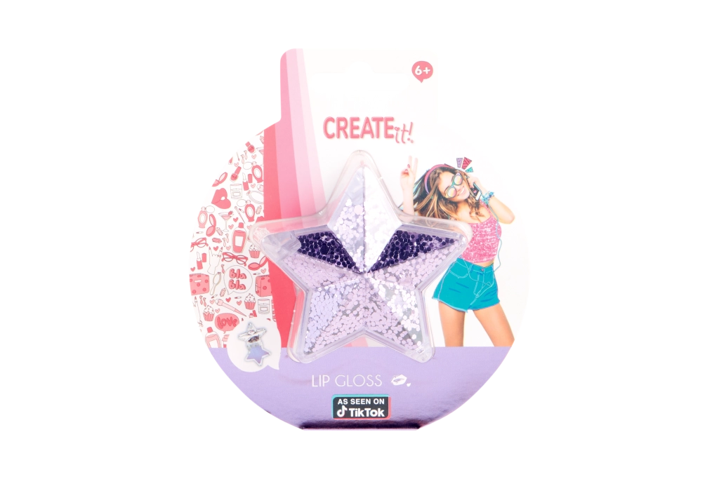 Speelse lipgloss voor kinderen vanaf 6 jaar in de vrolijke vormen hart, lippen en ster. De gloss geeft de lippen glans en hydratatie, ruikt naar vanille en verbergt sprankelende glitterconfetti in het transparante dekseltje. Het compacte formaat is ideaal voor in een zak of rugzak.