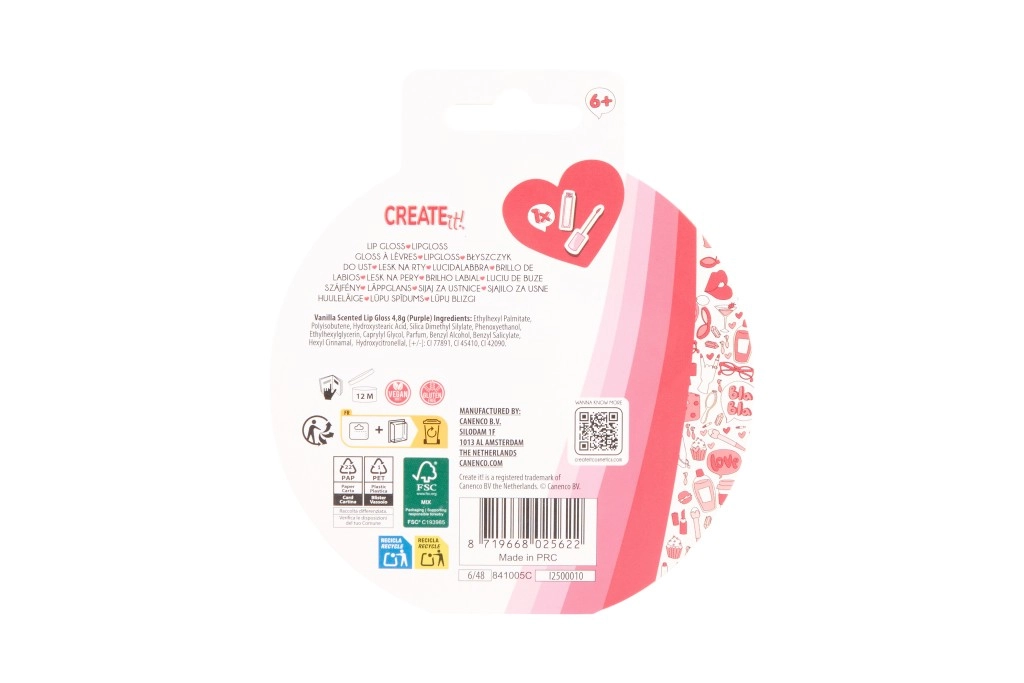 De CREATE it! lipgloss combineert verzorging en een speelse esthetiek in één schattig mini-doosje. Elke compact heeft een transparant dekseltje met zwevende glitters die meteen de aandacht trekken, terwijl de subtiel geurende vanilleformule de lippen een zachte glans en prettige hydratatie geeft.