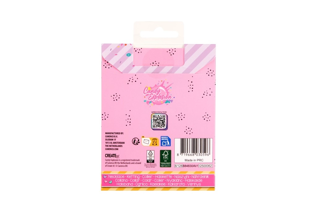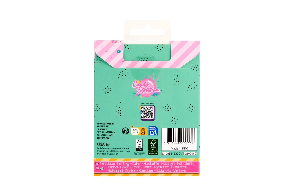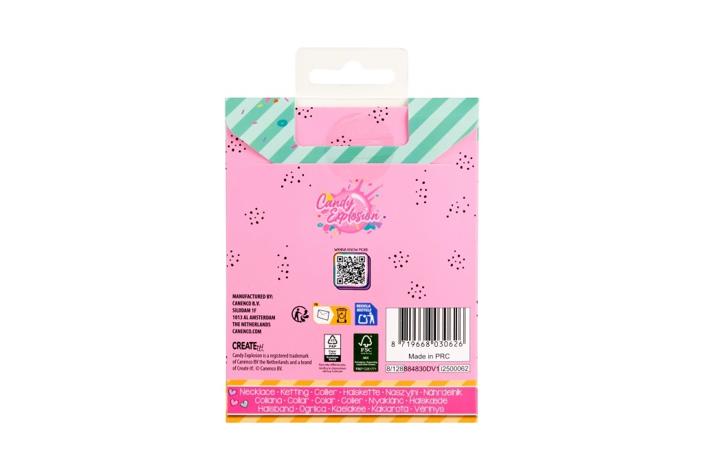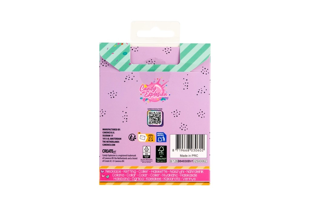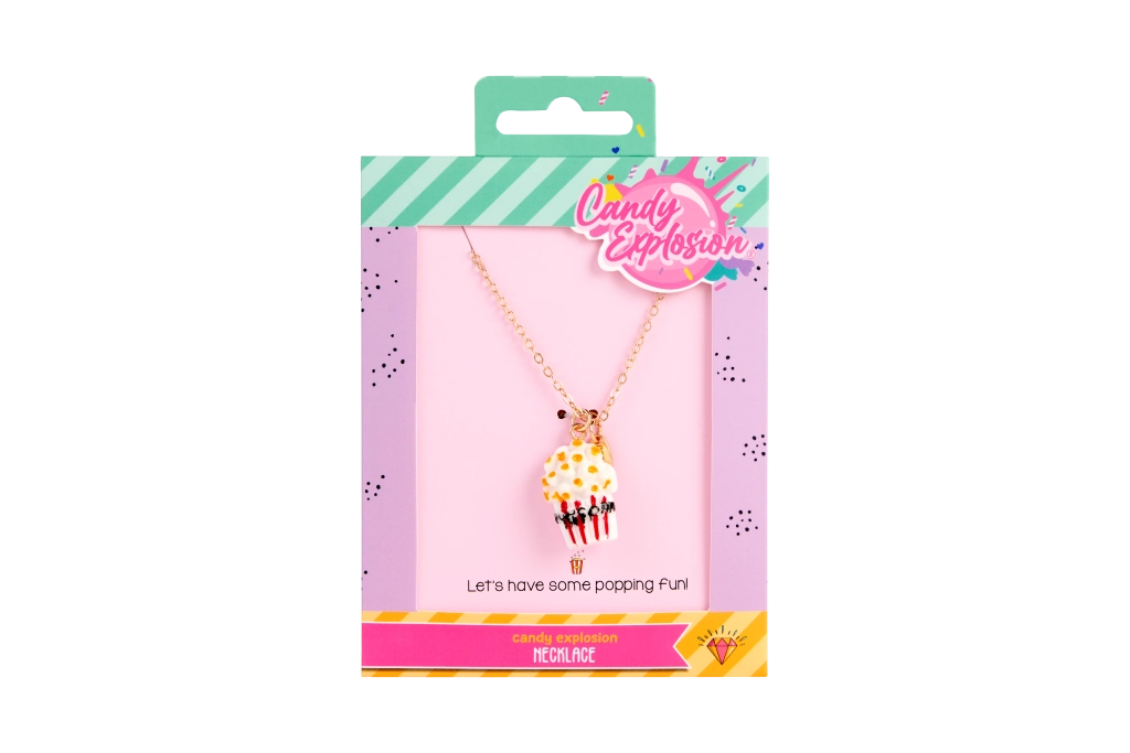 Elke ketting zit op een stijlvolle Candy Explosion-kaart met ophangopening – ideaal als klein cadeautje.