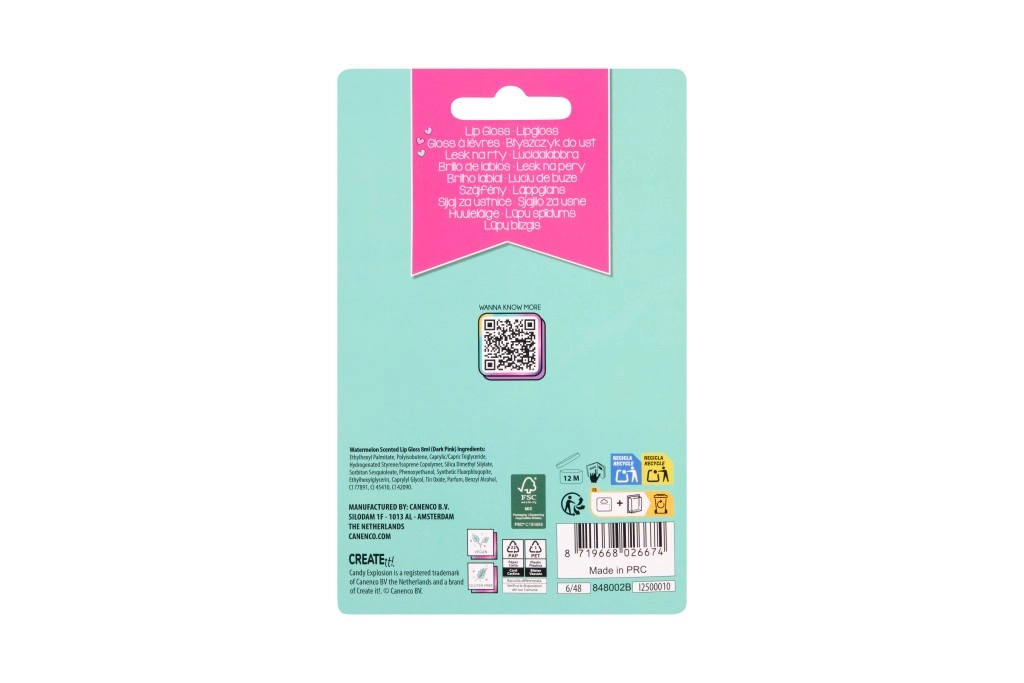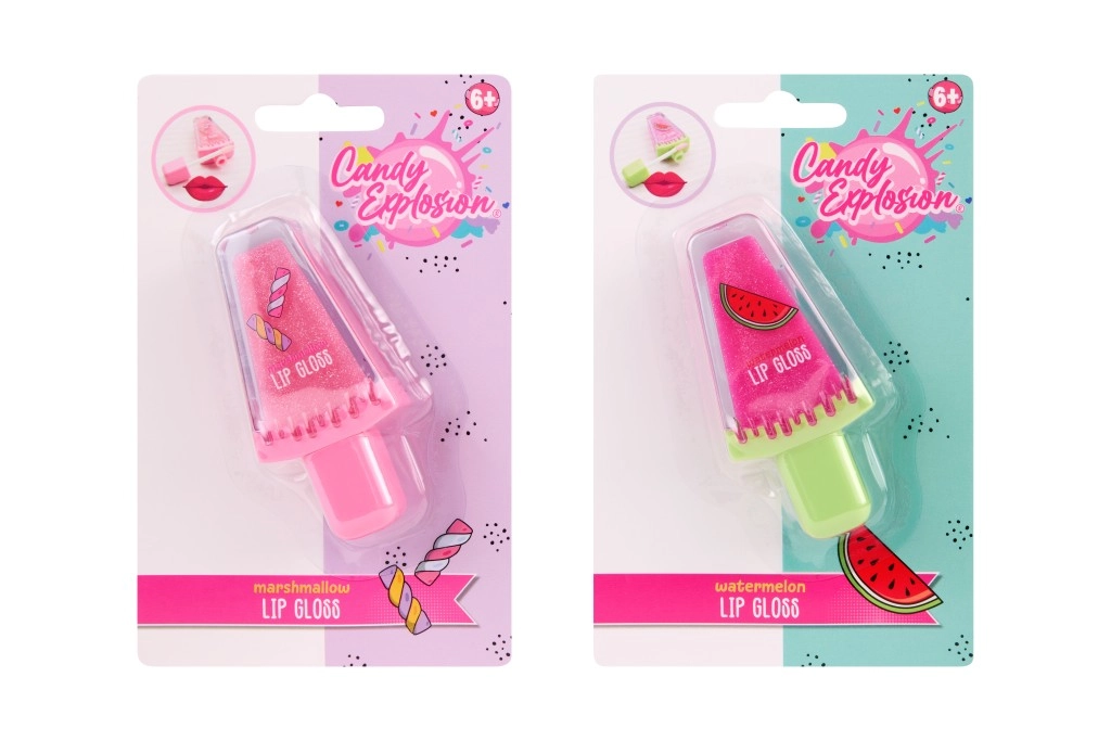 De Candy Explosion lipgloss in de schattige vorm van een ijsje is een geweldige manier om mooi glanzende en gehydrateerde lippen te hebben, de hele dag door. De compacte verpakking met de mogelijkheid om hem als hanger te bevestigen maakt het een stijlvolle compagnon voor onderweg en naar school. Kies uit twee “smaak”-thema’s – Watermelon of Marshmallow.