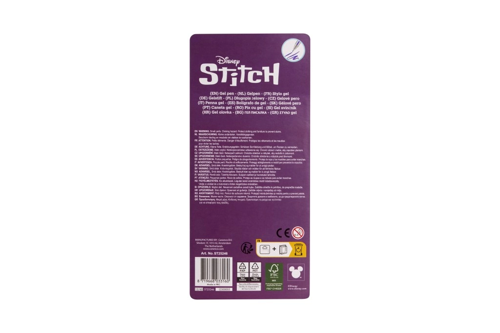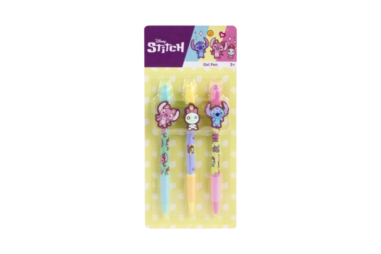 Stijlvolle set gelpennen met het motief van de geliefde held STITCH – ideaal voor schoolkinderen en DISNEY-fans. De pennen schrijven soepel, hebben een comfortabele grip en een praktische grote clip om gemakkelijk aan een schrift of etui te bevestigen. Perfect voor school, aantekeningen en creatief schrijven.
