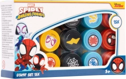 De set bevat 15 ronde stempels met iconische motieven van Spidey en zijn vrienden – ideaal voor papierprojecten, kaartjes en scrapbooking.