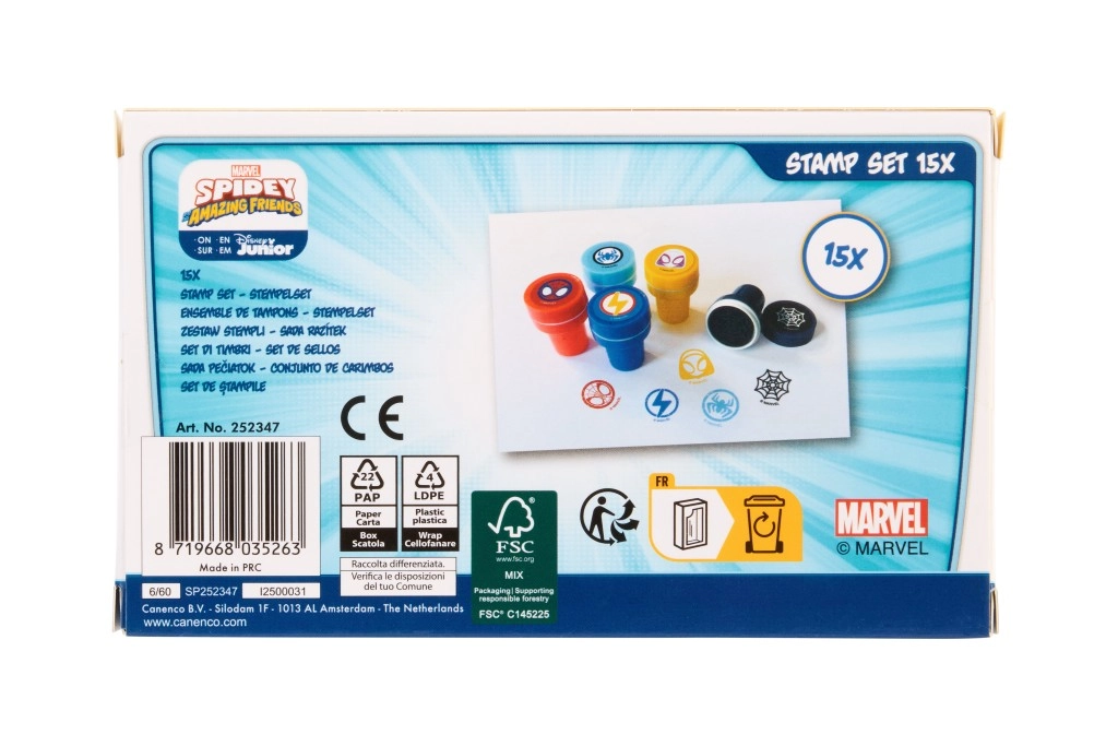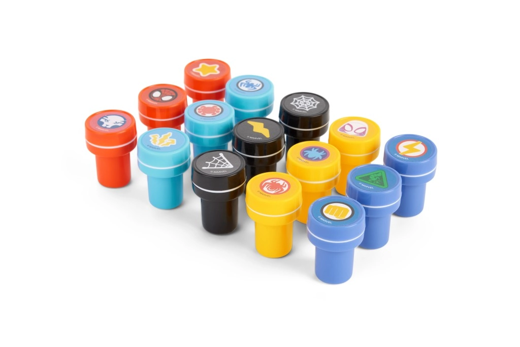 Ontdek een wereld van creatief plezier met deze stempelset geïnspireerd op de serie MARVEL Spidey en zijn geweldige vrienden. Kinderen zullen houden van de heldere kleuren, het eenvoudige gebruik en de vele motieven waarmee ze originele tekeningen, uitnodigingen en versierde schoolschetsboeken maken.